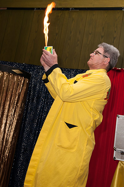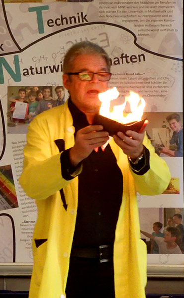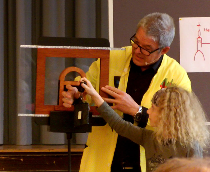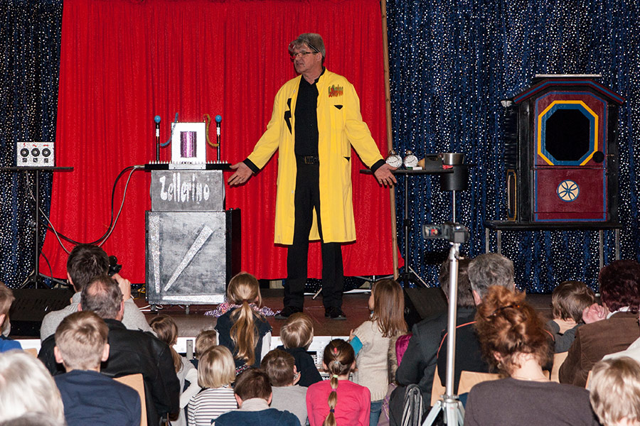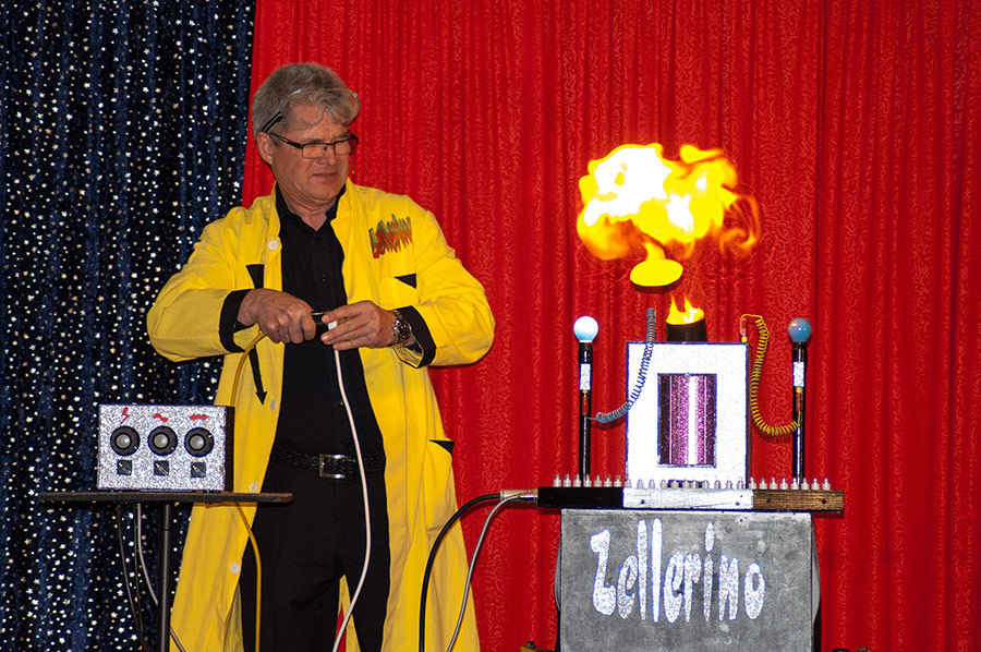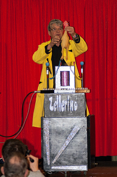 Der "verrückte Erfinder" stellt allerlei Erfindungen vor, die eigentlich garnicht möglich sind. Trotzdem zeigt er alles live und erklärt auch noch genau die technischen Hintergründe. Keiner versteht die Zusammenhänge, aber alle haben Tränen in den Augen. Diese Art des Zauberns ist meine jüngste Liebe. Eigentlich ist es gar keine Zauberei, sondern eine Werbeveranstaltung eines Erfinders.