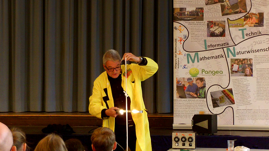 Das untere Video zeigt Ausschnitte vom "Tag der offenen Tür" eines naturwissendschaftlichen Gynmasiums. Als Abschluss, nach dem Ansehen Laborversuche, sollte den zukünftigen Schülern ein "erweiteter" Ausblick auf das was möglich ist, gewährt werden.
