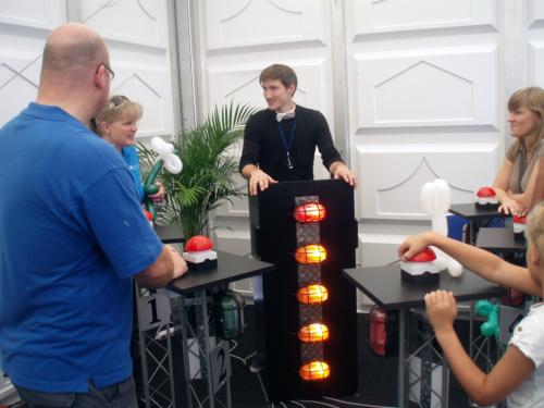 Meine neueste Entwicklung:Eine Buzzeranlage für die Fa. Supaevent.Die Anlage konfiguriert sich selbstständig, signalisiert die verschiedenen Situationen mit unterschiedlichen Tönen und hat schchließlichauch noch eine Überwachungszeit. Alle Komponenten einschließlich der Steuerungwurden von mir entwickelt und gebaut.